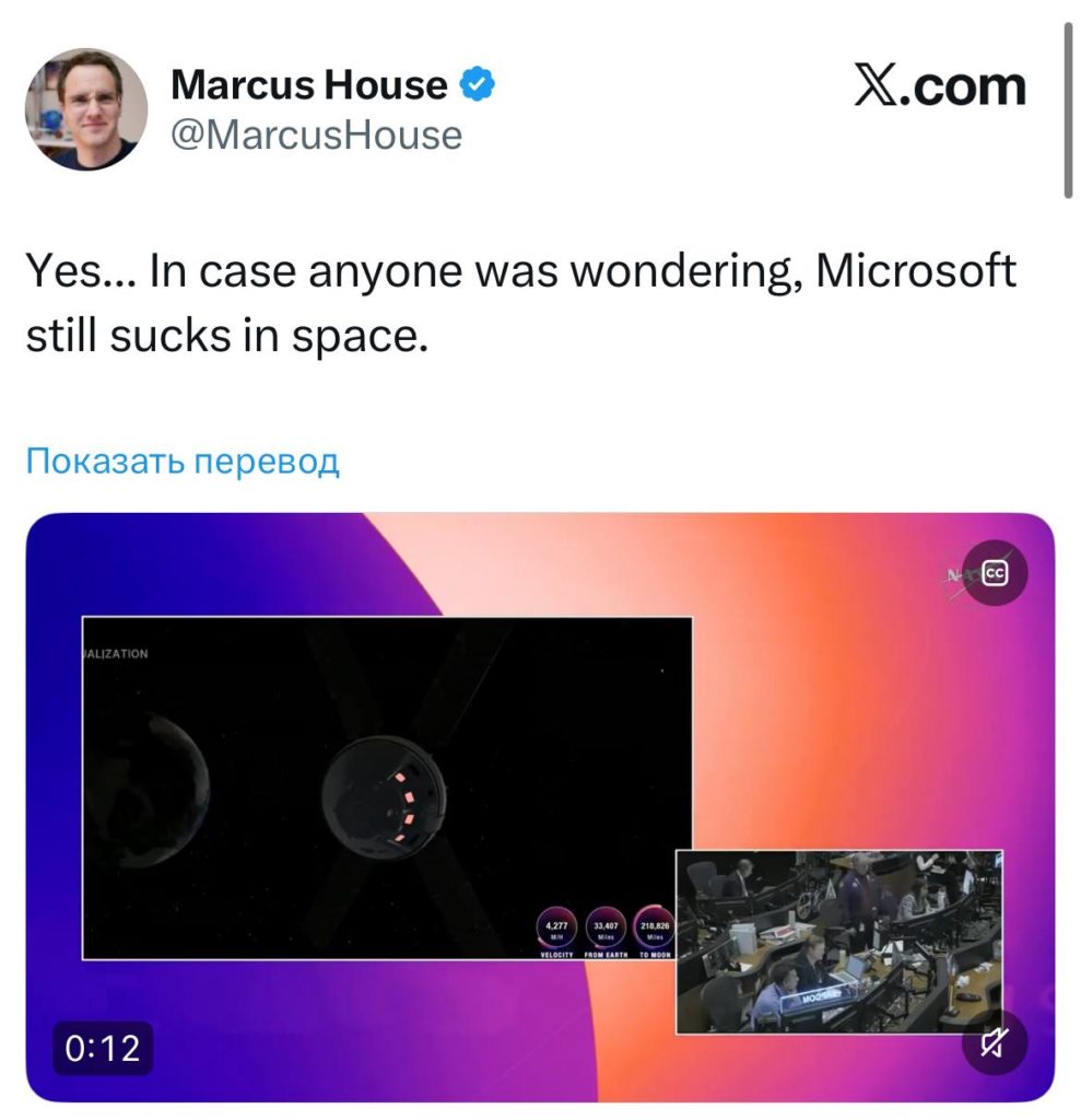 Microsoft лагает даже в космосе